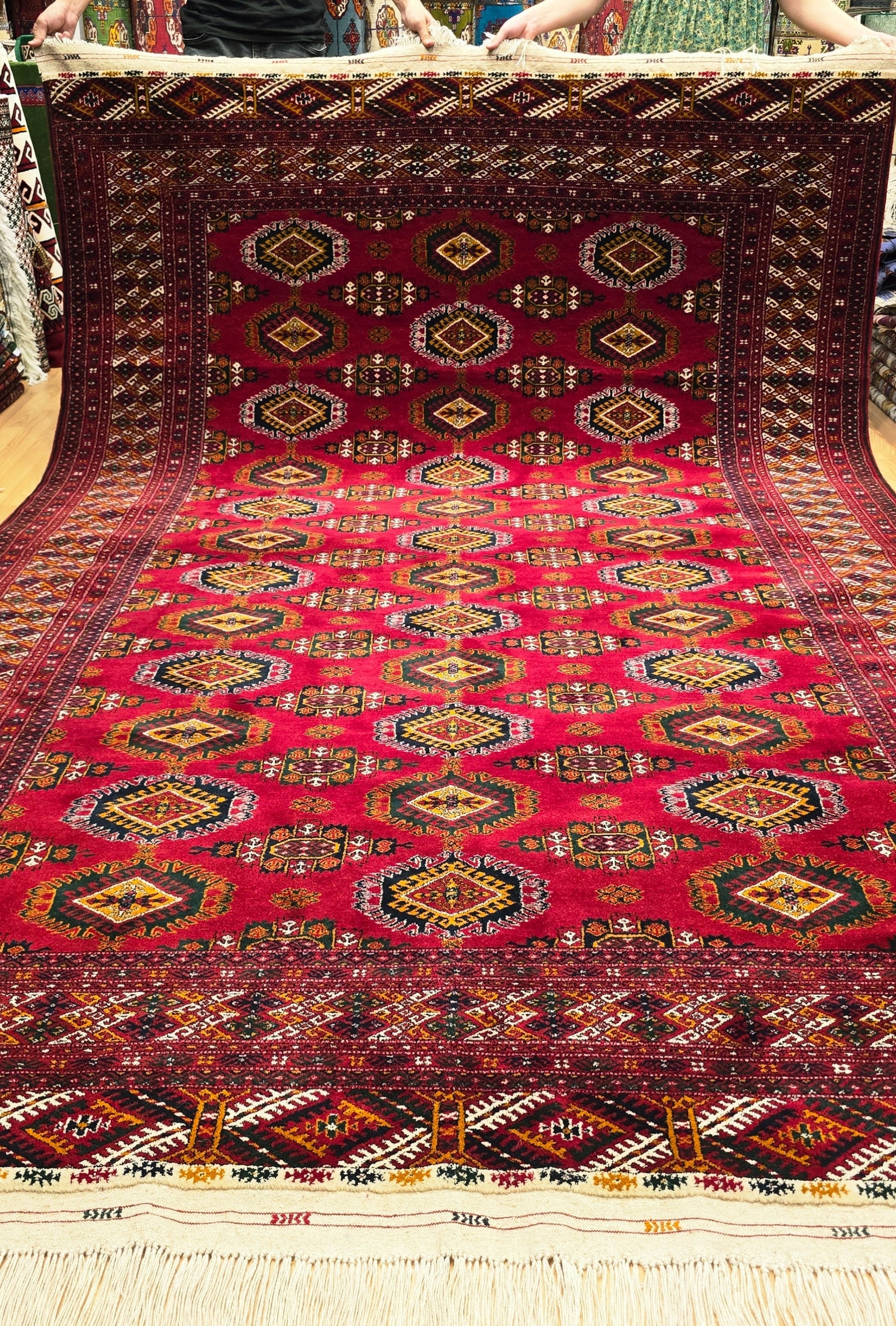 Rare Turkoman Yomut Kepse Eagle Gul Handknotted Wool Rug 207 x 310cm (7x10 ft) Red