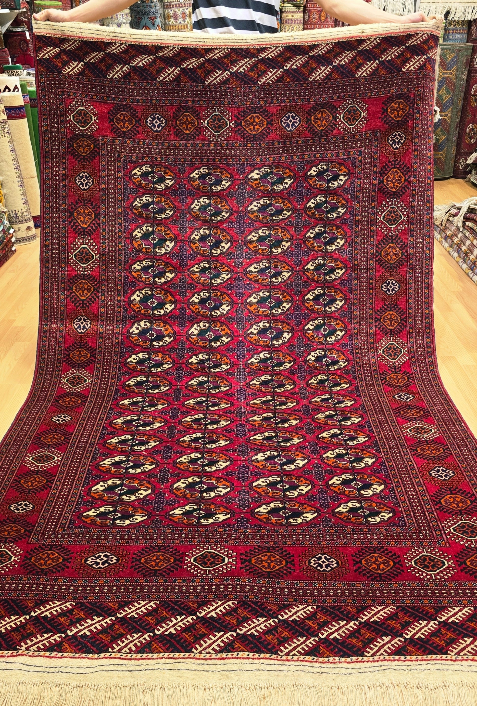 Turkmen Rug Antique Handknotted Wool Rug 155 x 250cm (5' x 8' ft) Red