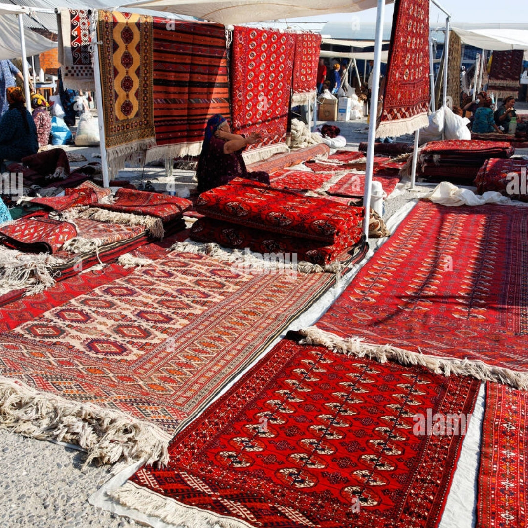 Their journey in the rug industry began modestly, selling rugs in a small corner of the bustling Jygyldyk (Tolkuchka) Bazaar — one of the liveliest local marketplaces.