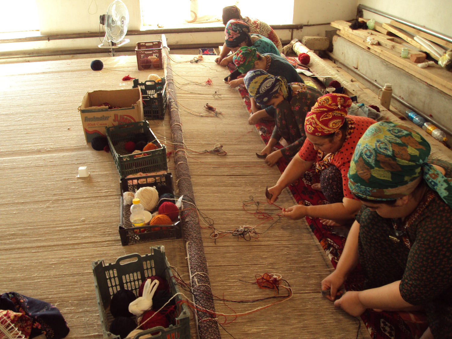 A major step was taken toward handmade rug production by providing employment opportunities to local Turkmen women living in rural areas of the Balkan and Ahal regions. Under the leadership of Mother Gülhatyja, women were encouraged to weave Turkmen rugs in their own homes through cooperative agreements.